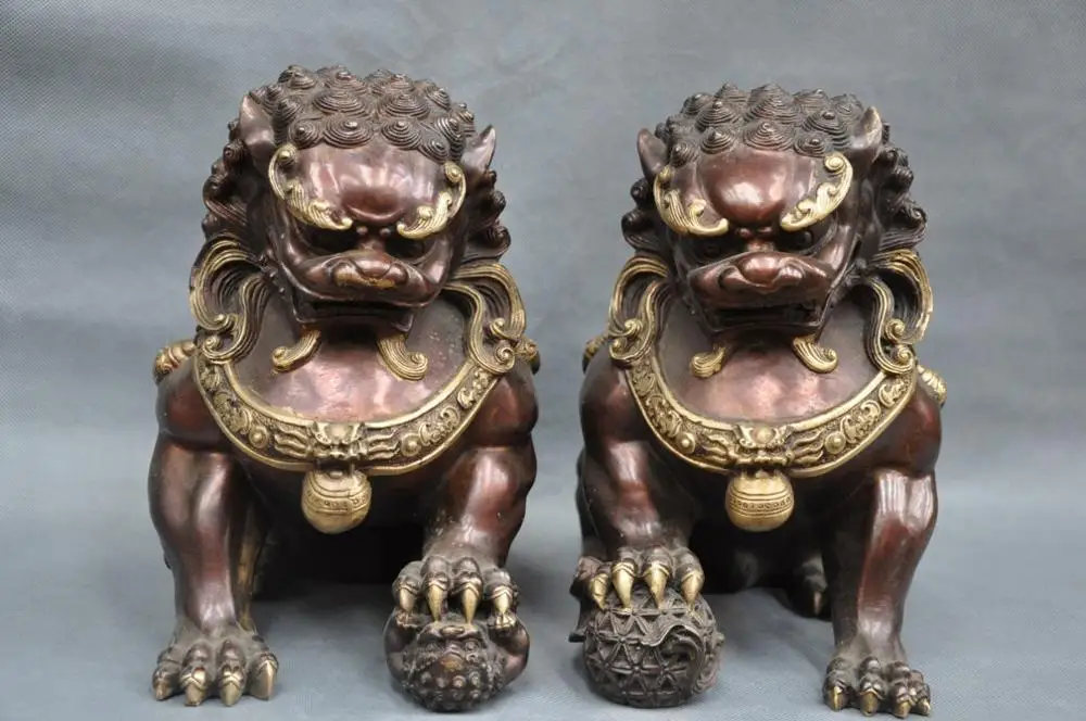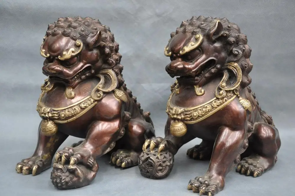Hot Sale 11'' China Fengshui Foo Dog Lion Door Guardian Family Bronze Statue
