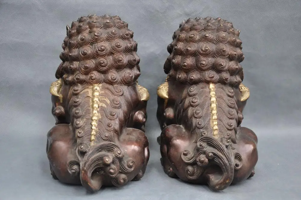 11'' China Fengshui Foo Dog Lion Door Guardian Family Bronze Statue