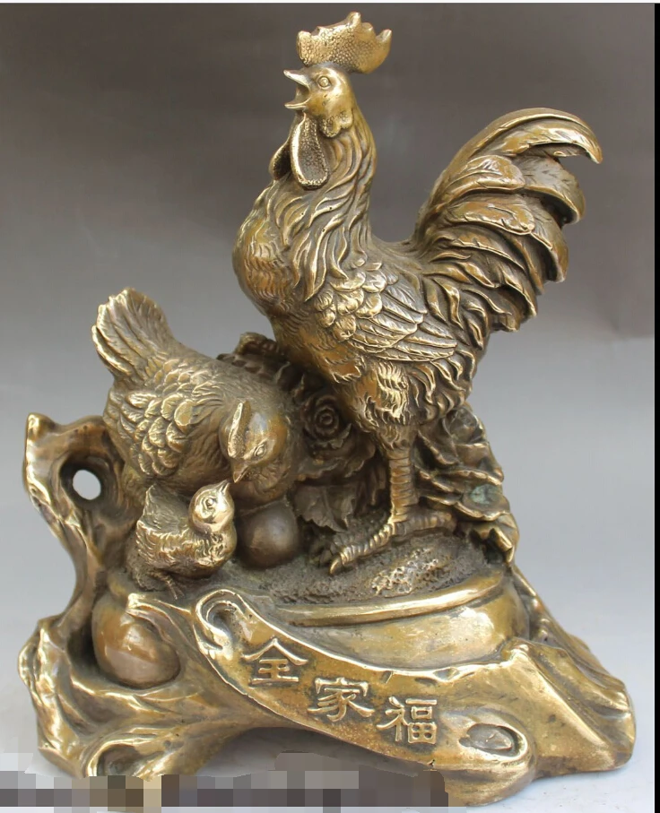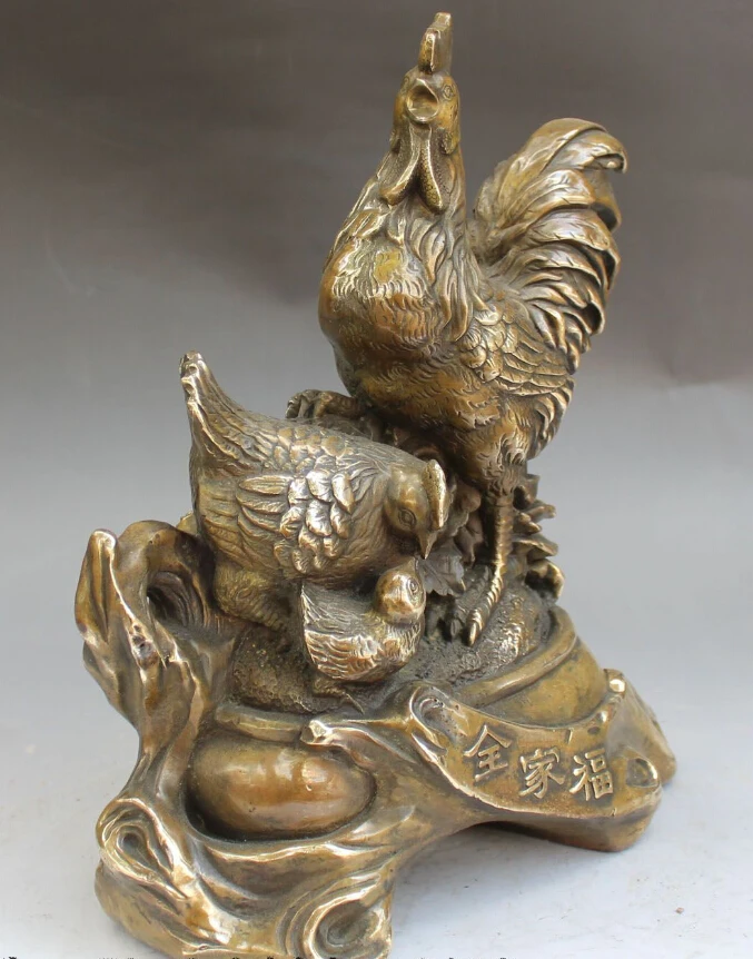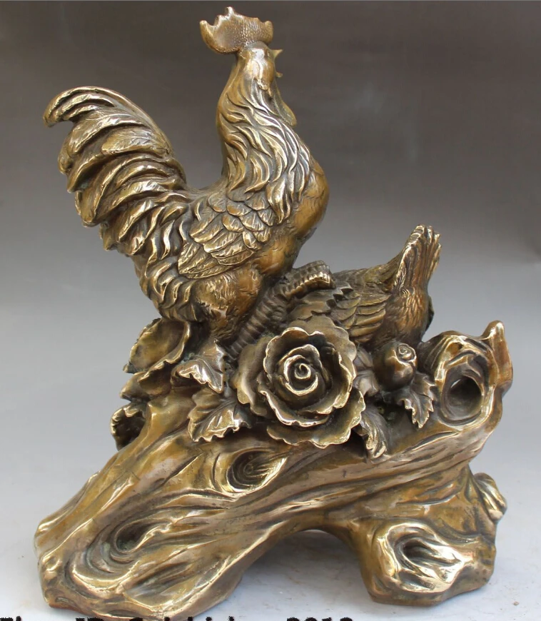 Hot Sale 13" Chinese Bronze Carving Flower Family Animal Chicken Chick chanticleer Statue