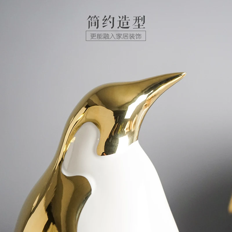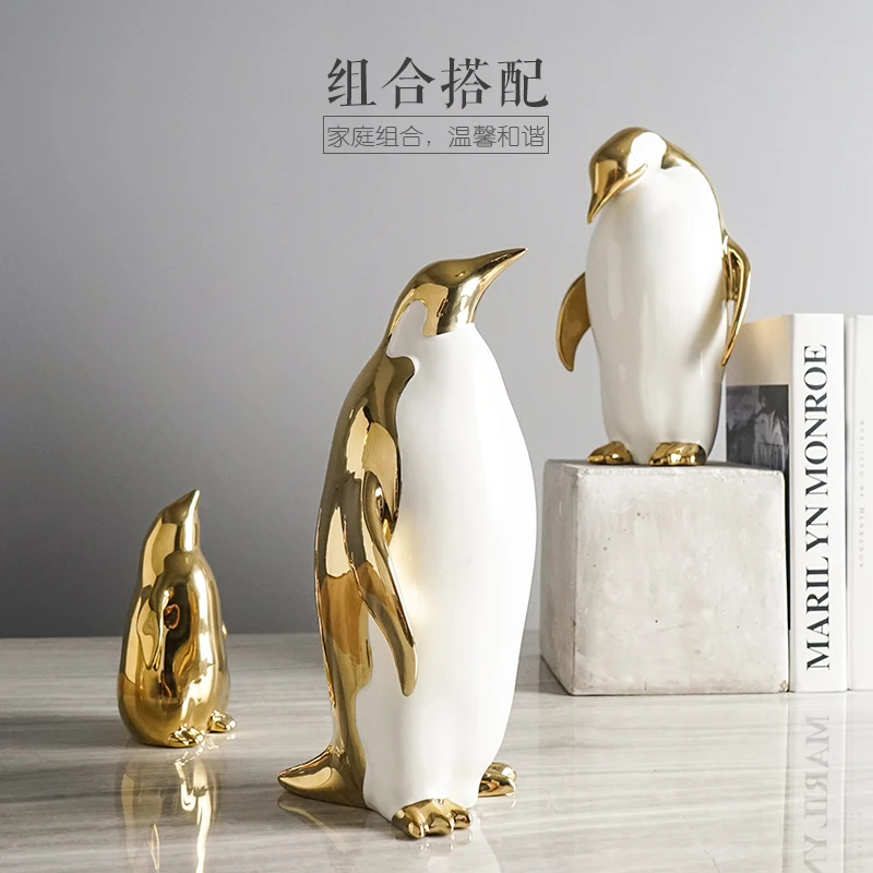 Best Seller Hot Gold-plated Penguin Family Porcelain Decoration Home Decorations Crafts Ceramic Crafts Electrop