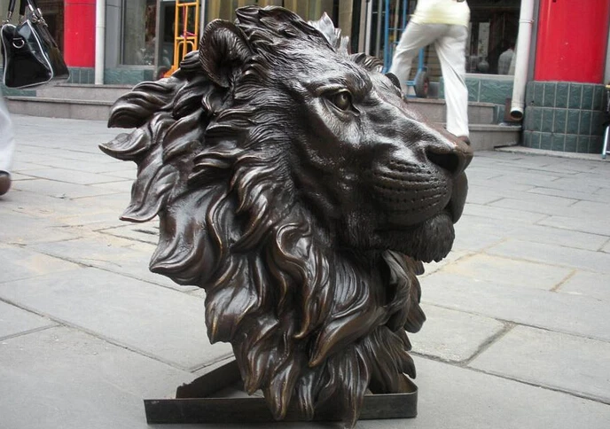 wholesale factory Chinese Pure Bronze HSBC Lions Head Wall Hang Family Decor Art Sculpture