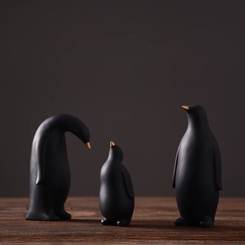 American village home furnishing decoration A warm and loving family of penguins creative hand made