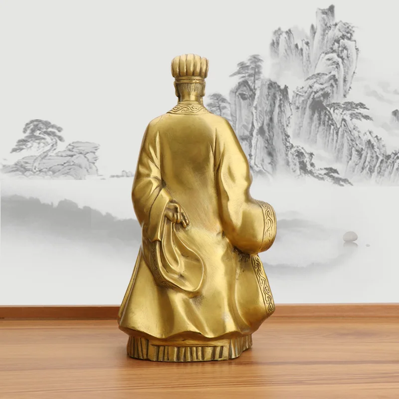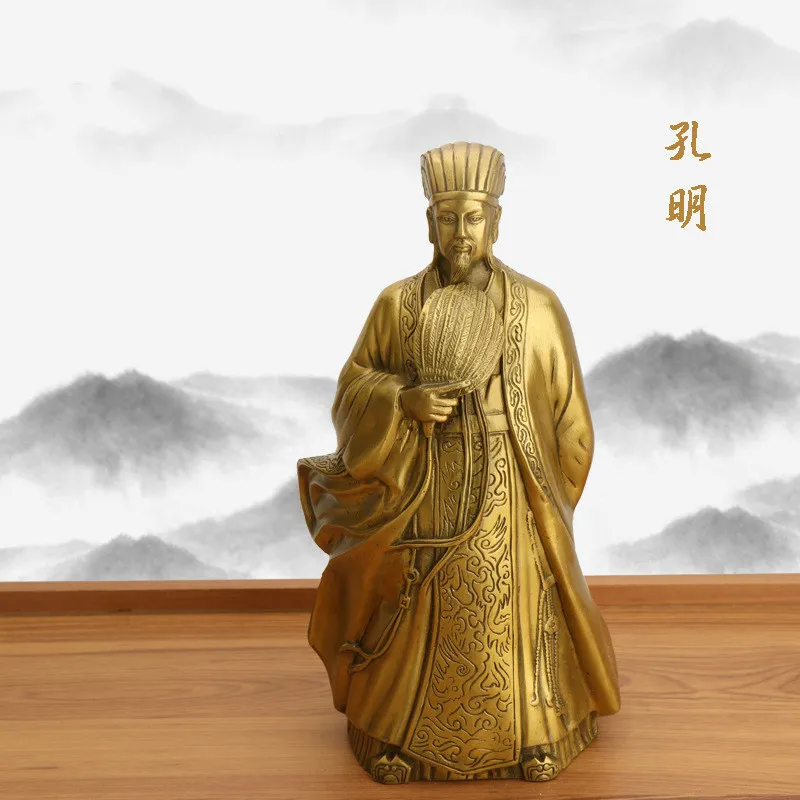 Zhuge Liang Statue Pure Copper Crafts Feng Shui Decoration Sculpture Sleep Grgon Bronze Decoration